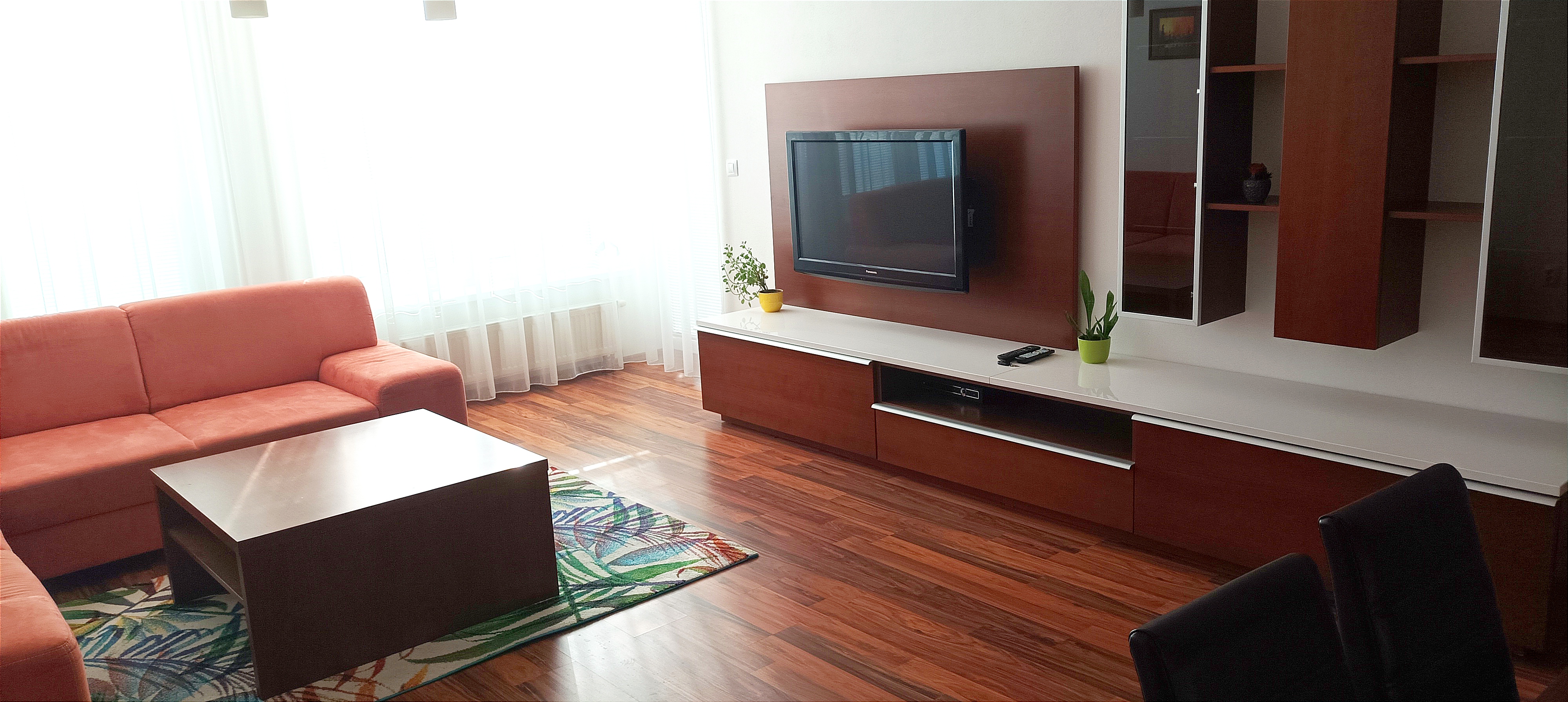 Podlahová plocha bytu je 71 m2 + 5 m2 pivnica + 6 m2 krytá terasa.